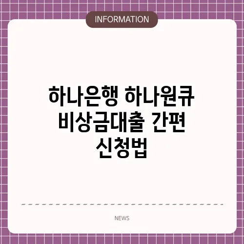 하나은행 하나원큐 비상금대출 간편 신청법